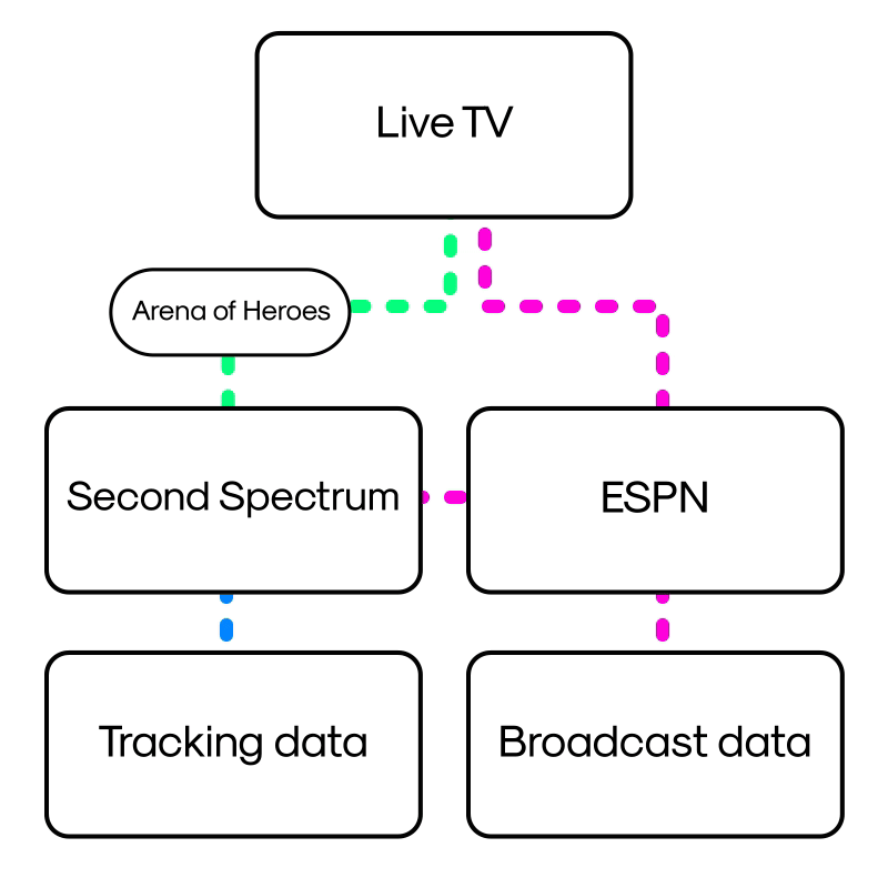 Redefining what's possible in a basketball broadcast, Arena of Heroes created an immersive experience where players on the court are envisioned as Marvel™ heroes, each with unique powers and narratives. As they compete, their performance on the court equates to them earning "hero points," intertwining real-world athletic prowess with the enthralling tales of Captain America, Ironman, and more.